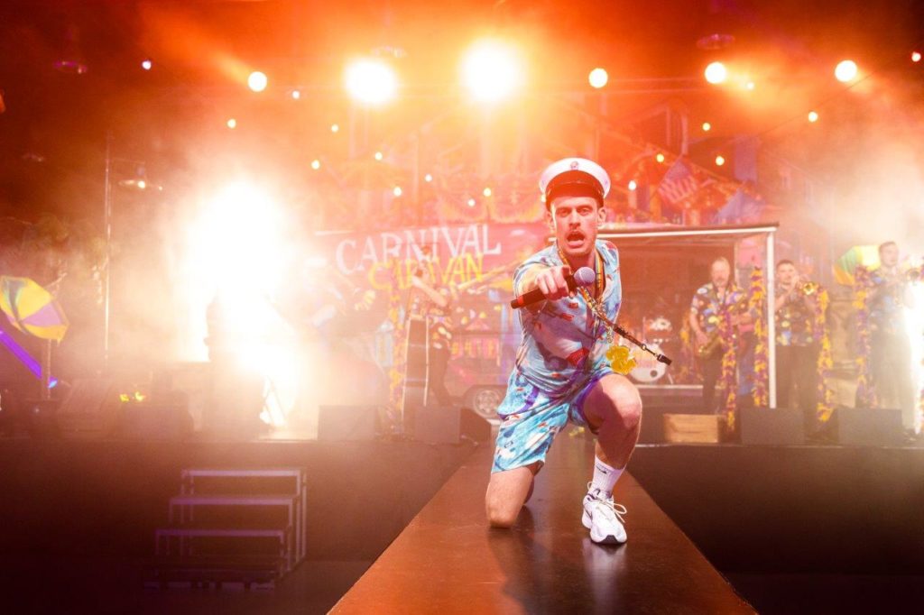 Publiken leds med i karnevalska upptåg, färglada partyparaplyer/stora halsband och avancerade blåssektionerspartier omvartannat. Ung som äldre, regn som sol – Alla ska med!!