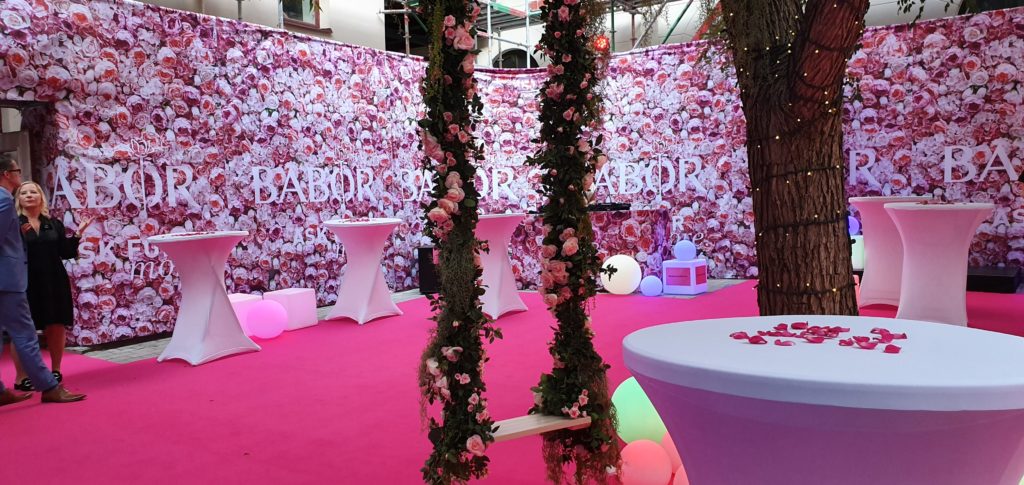 hookhuskvarna DSC 6564 scaled - Eventkraft har tillsammans med uppdragsgivaren Dekoform AB kommit med idéer och förslag samt så småningom även levererat tekniska lösningar till invigningen av Babors butik på Östermalm i Stockholm. Eventkraft var på plats och skapade en somrig och lekfull miljö med Astera LED-kuber & bollar, ståbord, DJ-anläggning och logo-projicering.