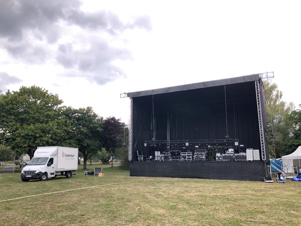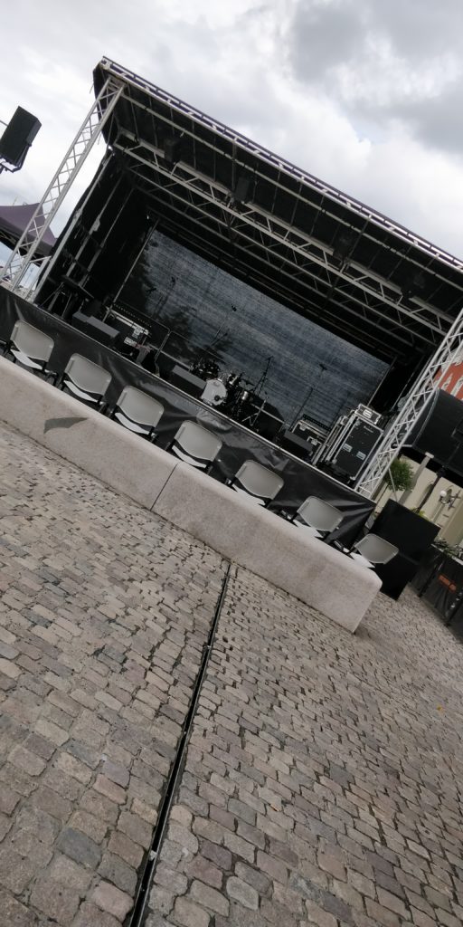 Lilla scenen vid Hotellplan inför konsert med Ashes, Hampus Carlson band, Spira On the Town, En scen för alla m.fl.