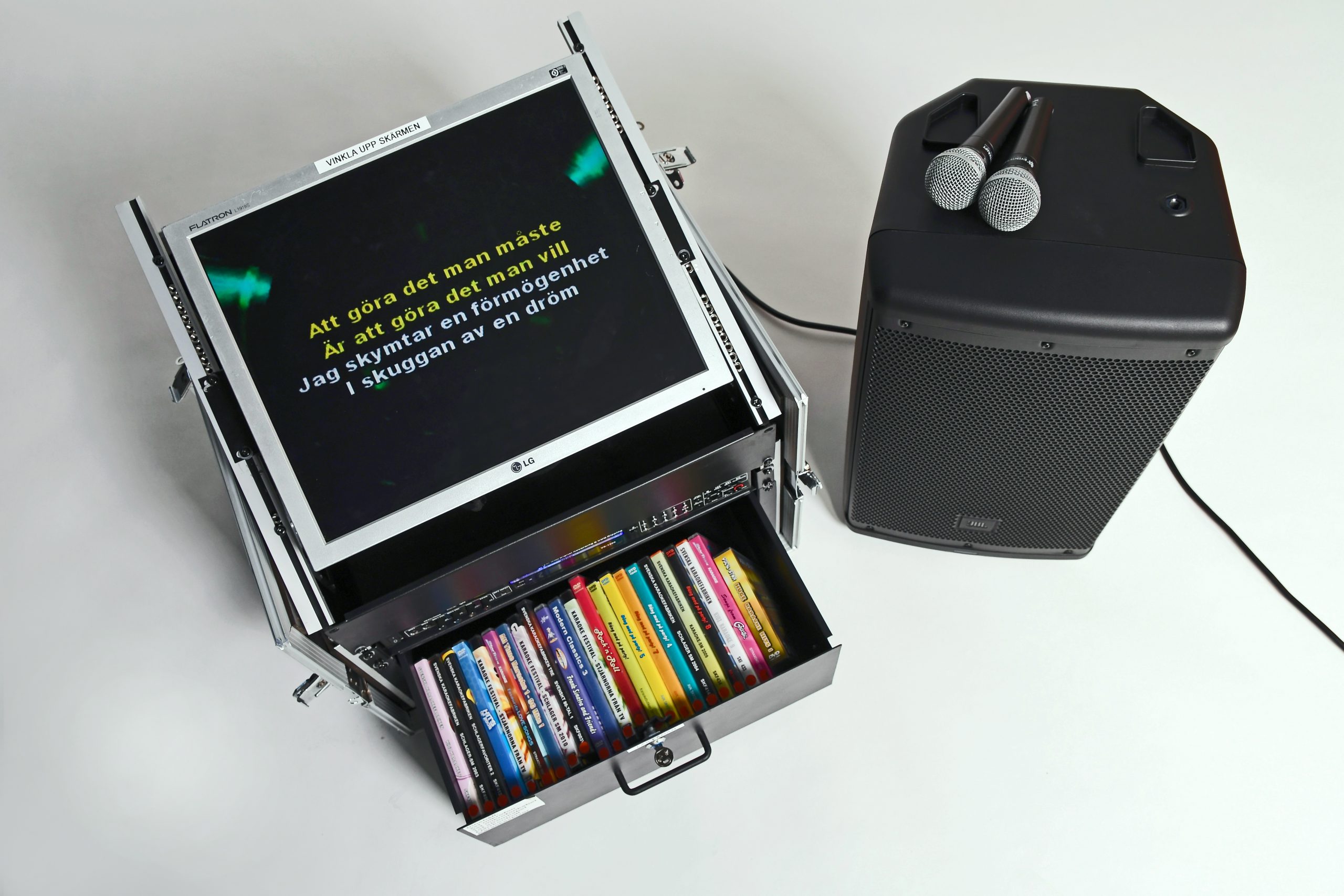 1 st kit med Karaoke-låtar på skiva ca 300 låt-titlar (eller digitalt via Youtube)