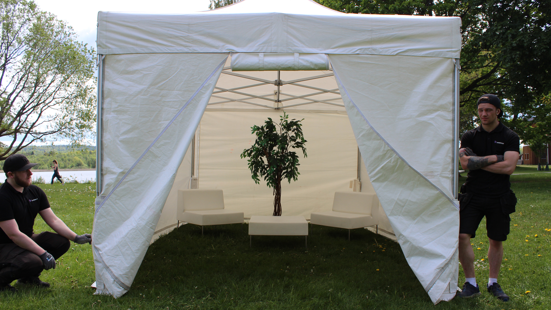 Snabbtält för dig som har höga krav på styrka, kvalitet och användarvänlighet. Tältet kan stå uppställt längre perioder vid t.ex. byggen eller festivaler.