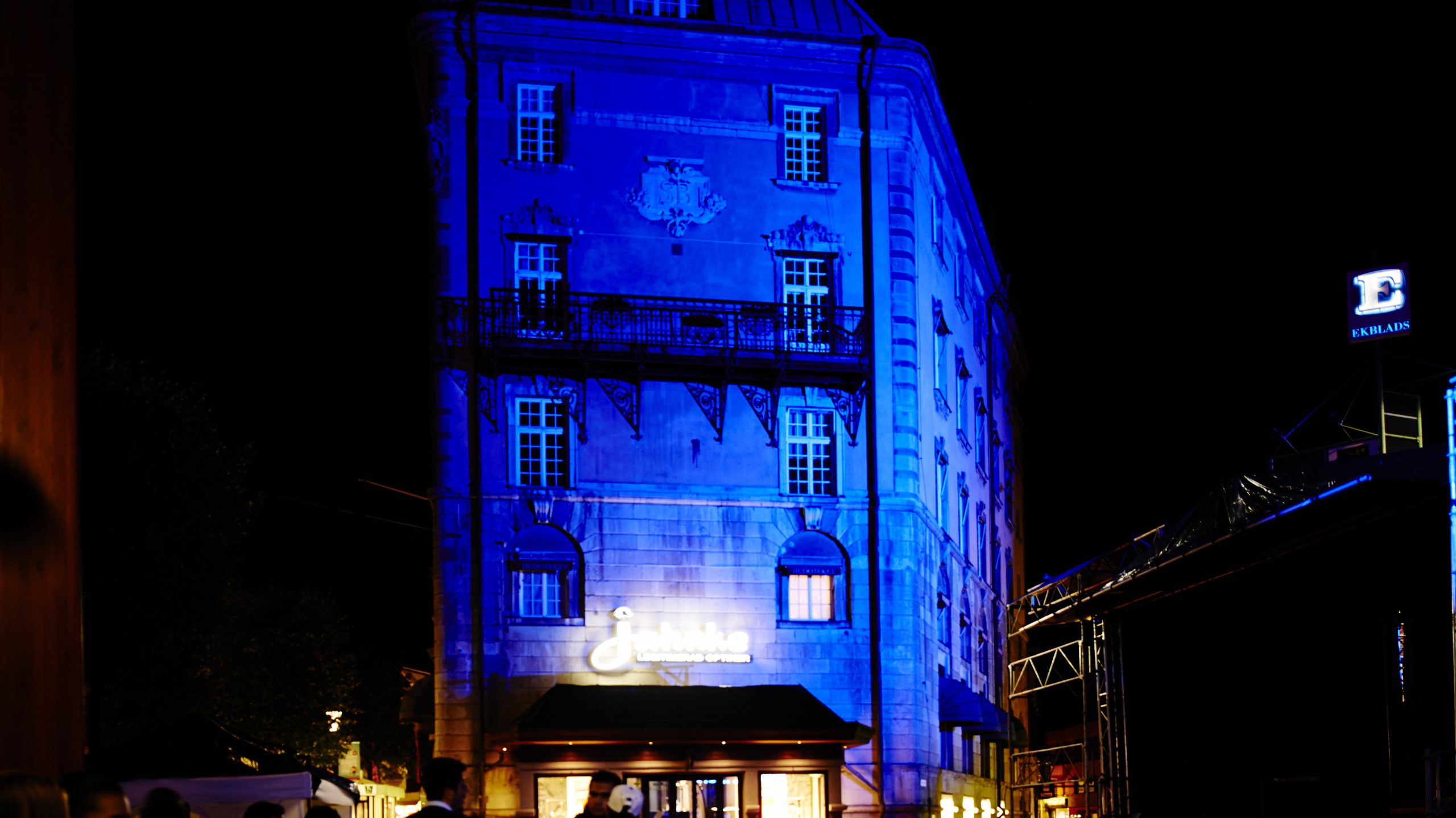 Hör av dig till oss om du vill veta mer eller beställa vårt fasad-ljuspaket för projicering utomhus!