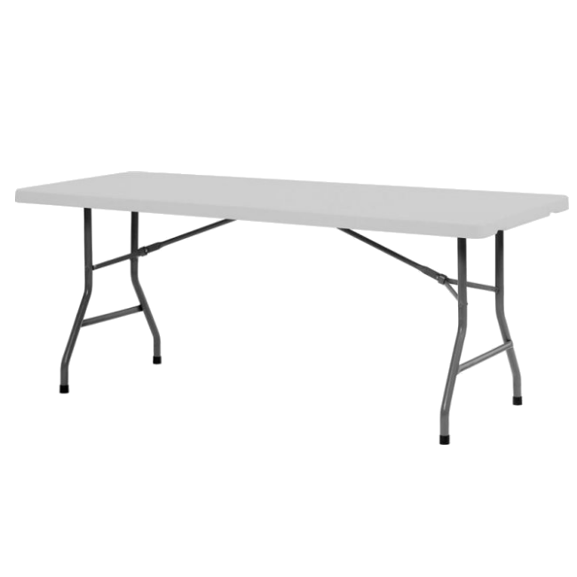 Det vanligaste bordet för uthyrning hos oss är vårt fixbord som är 183 x 76 cm och väger 13,8 kg. Det är ett tåligt fällbart bord som är lätt att transportera och har plats för 6 – 8 personer.