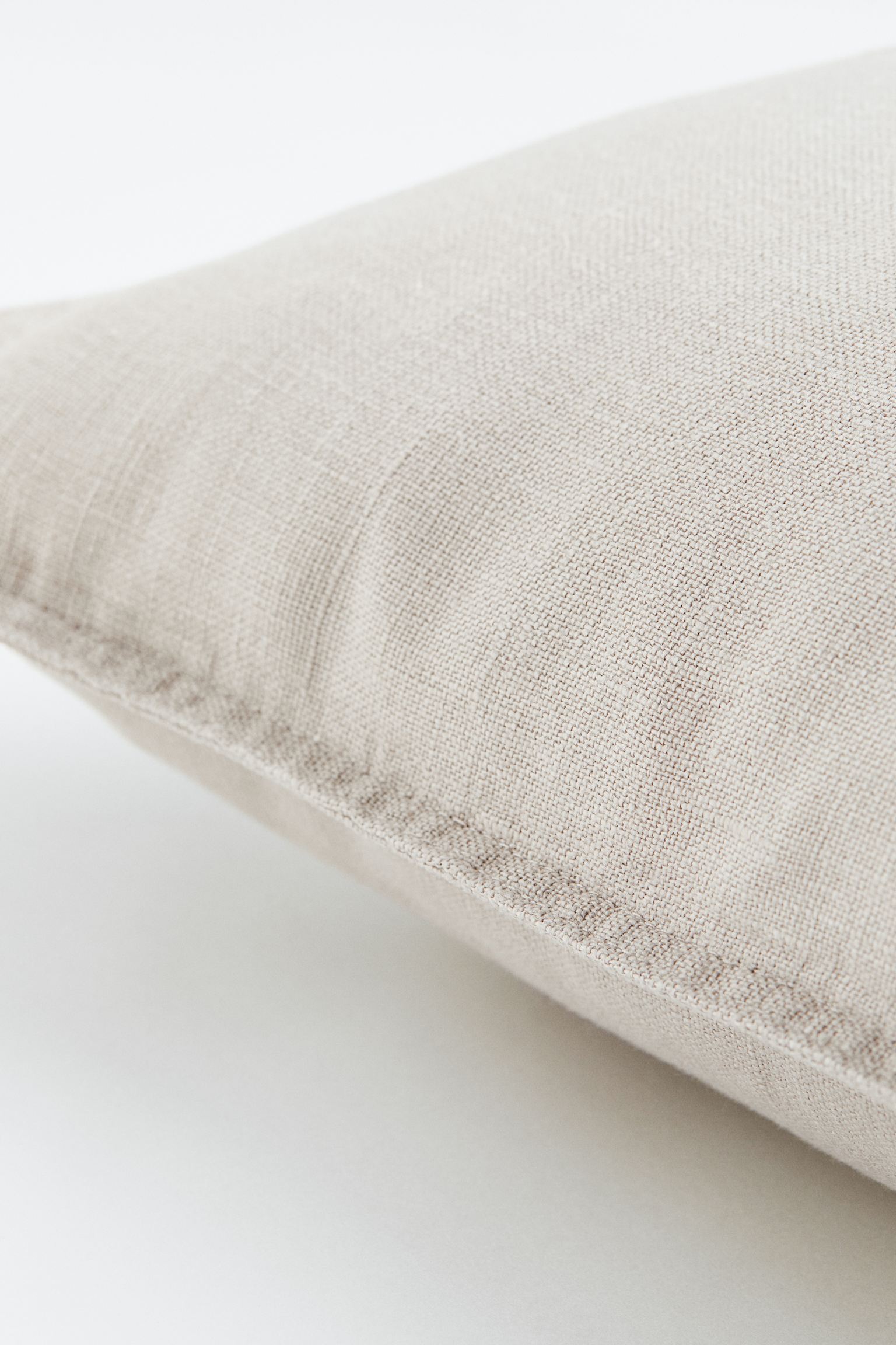 Kudde i tvättad linnekvalitet. Dold dragkedja. Innerkudde i vävd bomullskvalitet med fyllning av andfjäder.
