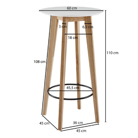 Höjd: 110 cm Bordsskivan: 60 cm i diameter