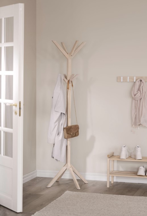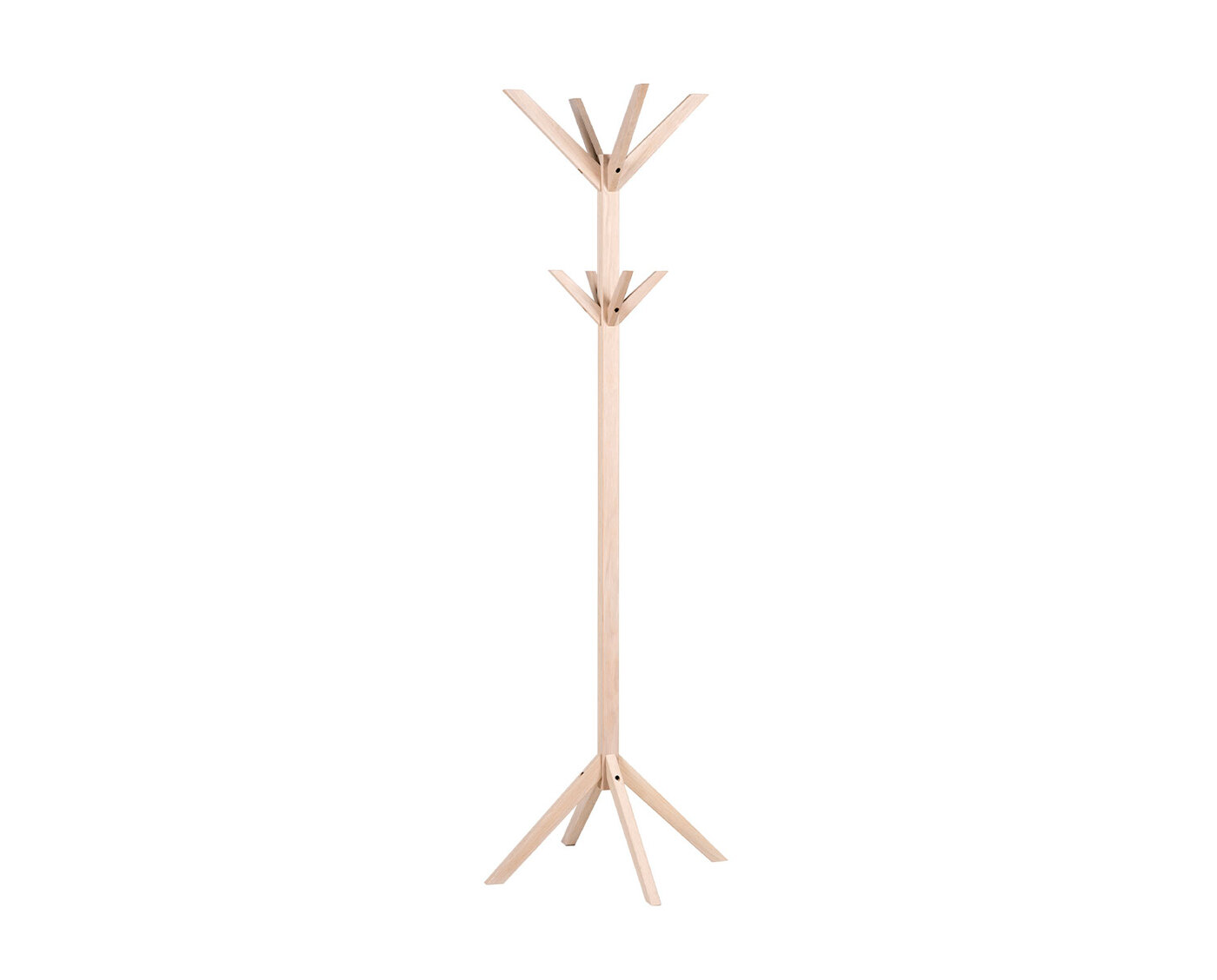 Klädhängare och tamburmajor i massiv vitpigmenterad ek. Klädhängaren har en modern skandinavisk stil med 8st hängare.