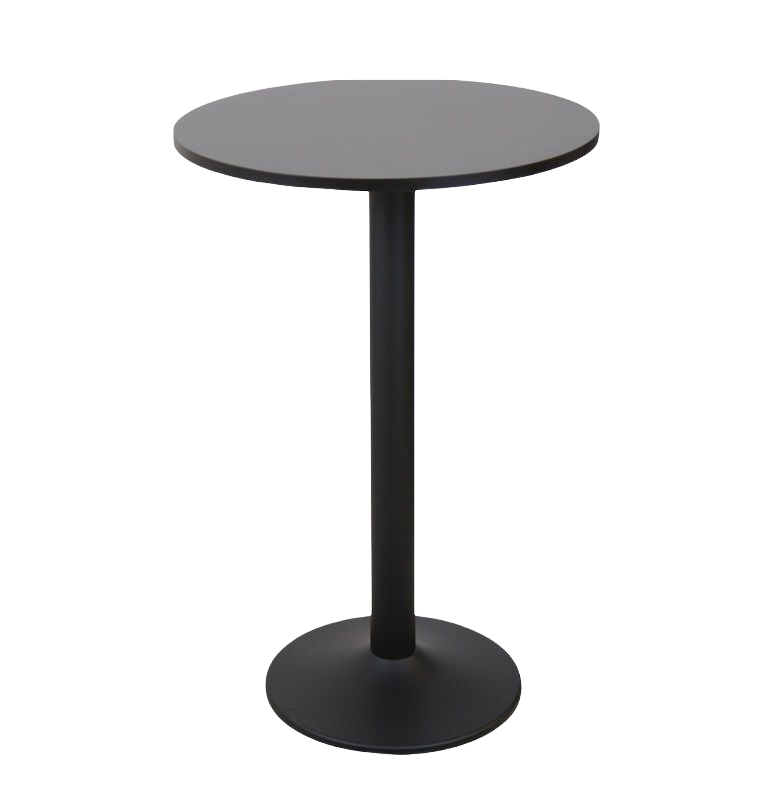 Ståbord med svart underrede och bordsskiva, populära vid mingel och bufféer eller vid tillfällen då man inte får plats med publiken sittande.