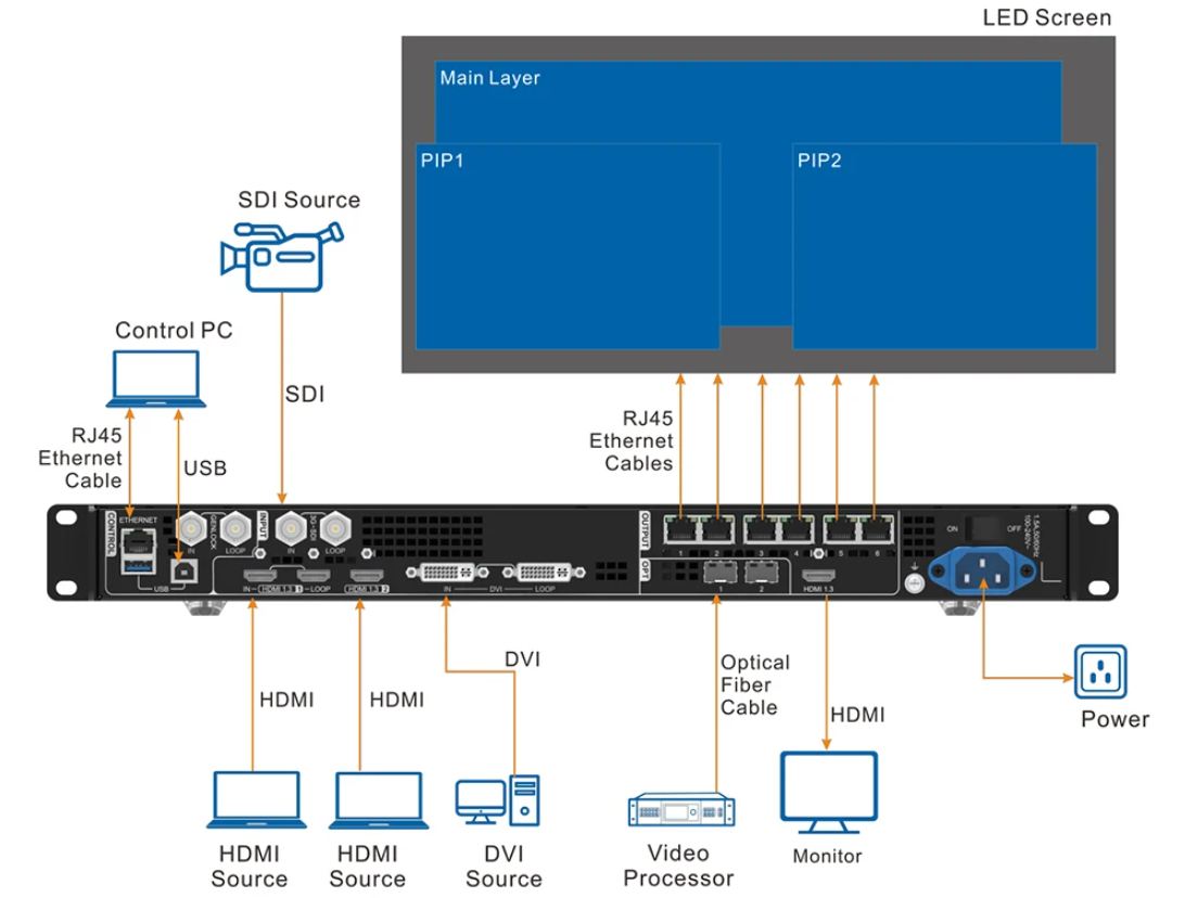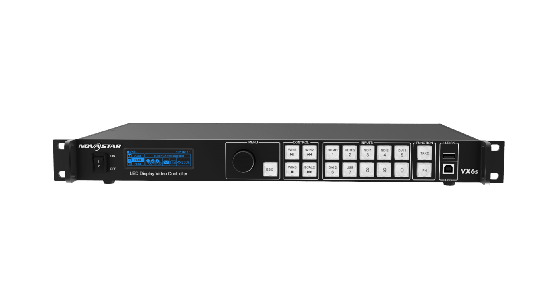 Novastar VX600 ledcontroller/scaler stödjer en upplösning på upp till 10,240 pixlar på bredden och 8,192 pixlar på höjden