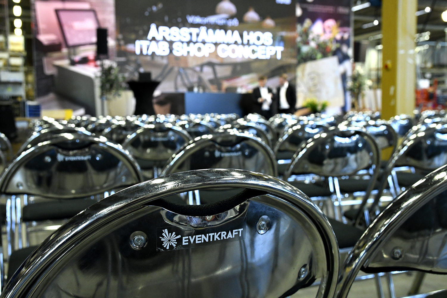 IMG 5022 scaled - ITAB Shop Concept är världsledande på butikskoncept och Europas största aktör inom butiksinredning och kassasystem. Företaget valde att hålla den senaste årsstämman i sin fabrik. Man ville ta vara på tillfället att visa upp produktionsanläggningen för sina aktieägare och tyckte därför att årsstämman skulle hållas i den miljön.