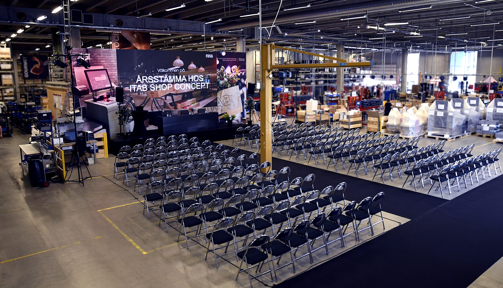 ITAB Shop Concept är världsledande på butikskoncept och Europas största aktör inom butiksinredning och kassasystem. Företaget valde att hålla den senaste årsstämman i sin fabrik. Man ville ta vara på tillfället att visa upp produktionsanläggningen för sina aktieägare och tyckte därför att årsstämman skulle hållas i den miljön.