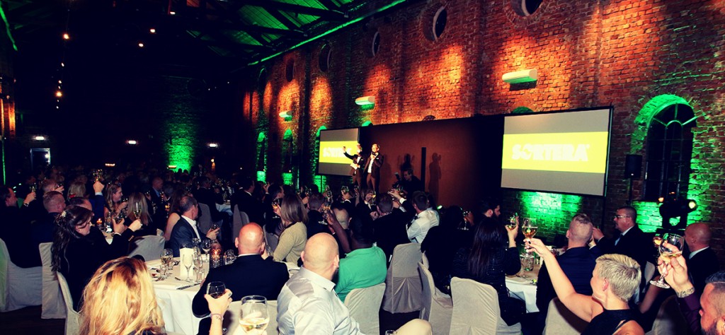 I mitten av november åkte vi till Markaryd och hjälpte Nibe med ett personal-event. Nibe har mer än 21 000 anställda globalt varav ca 1700 lokalt i Markaryd. Eventet var en hyllningskväll till de medarbetare i Sverige som har jobbat i företaget längre än 10 år och som därför hedrades med utmärkelsen Guldnålen. Guldnålen-eventet genomfördes i en del av Nibes egna lokaler som ännu inte tagits i industriell drift. Eventkraft fick i uppdrag att projektera och bygga om den råa industrilokalen till en festlig galamiljö, med runda bord, vita dukar, kandelabrar, bar-disk, tygdraperingar, scen, ljud, ljus, storbildsskärm m.m. Ca 300gäster minglade, åt en god trerätters middag och underhölls av musik och dans. Tack till Nibe för en trevlig kväll och visat förtroende.